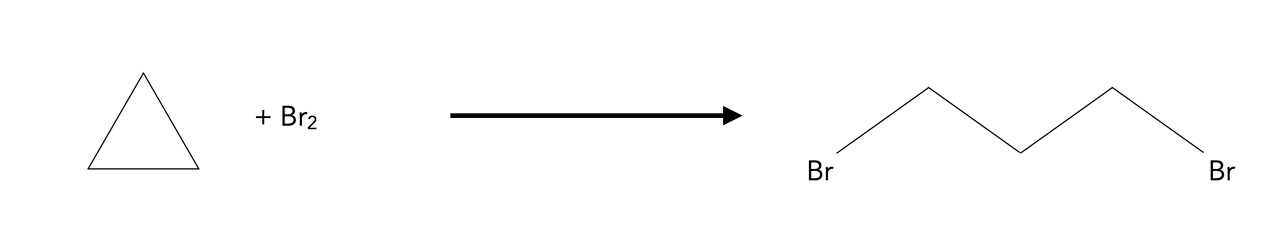 Durch Zufuhr von Wasserstoff kann sich dann der Ring öffnen und es bildet sich ein offenkettiges Alkan, aus Cyclopropan kann so Propan hergestellt werden. Wegen der enormen Ringspannung des Propans ist diese Reaktion sogar stark exotherm.