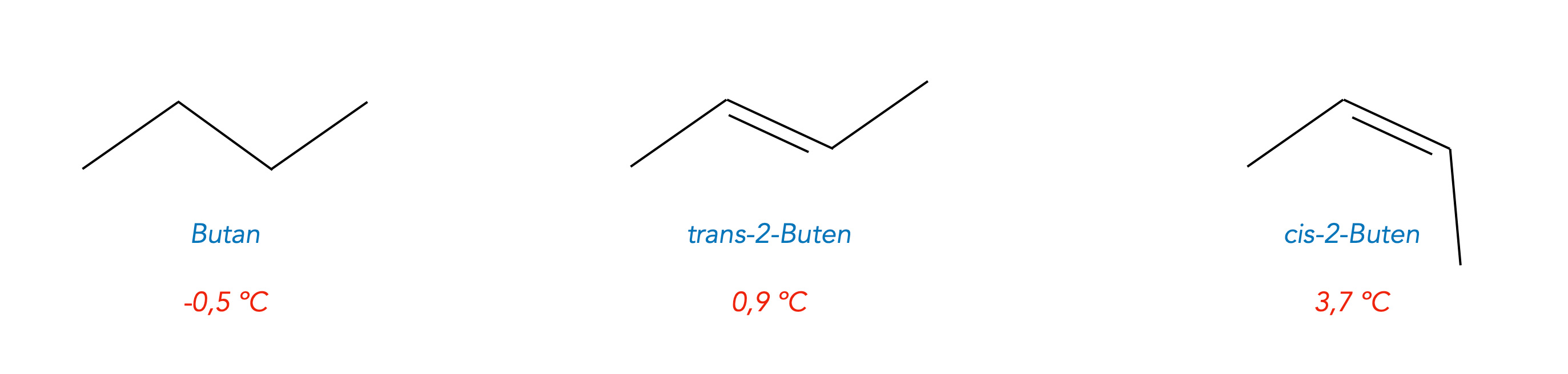 Interessant ist der Unterschied zwischen cis-2-Buten (3,7 ºC) und trans-2-Buten (0,9 ºC).