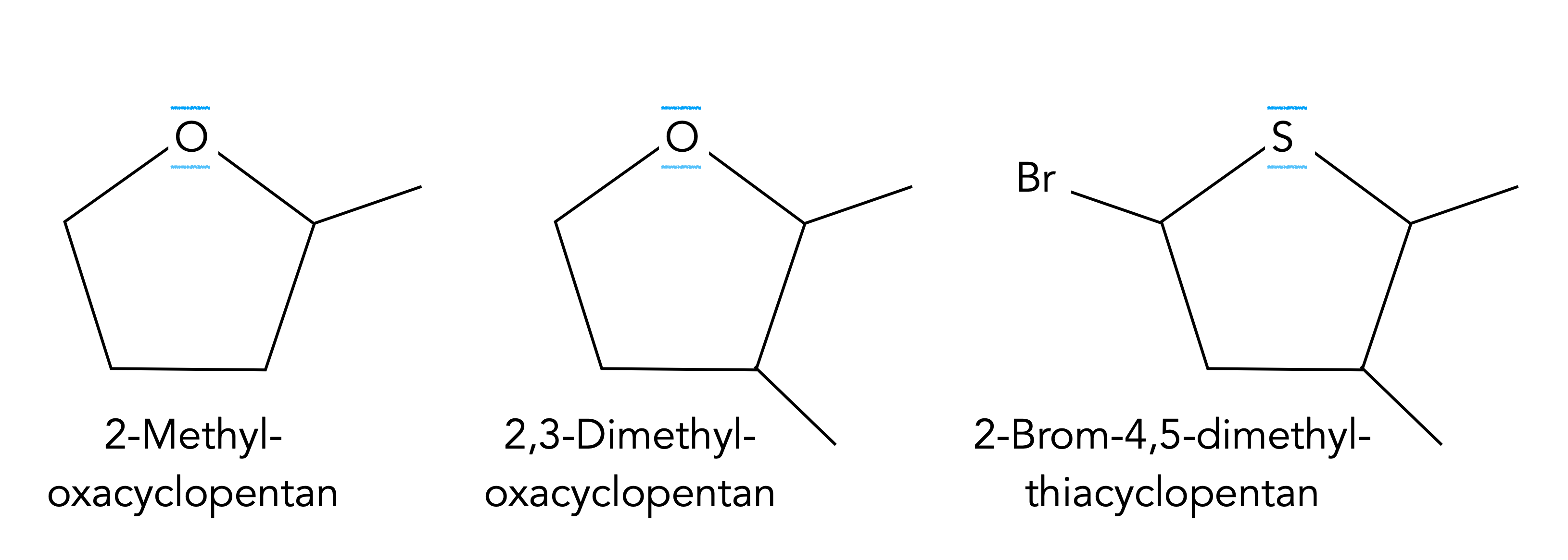 Fangen wir ganz einfach an, am Beispiel der Cyclopentane mit Heteroatomen.