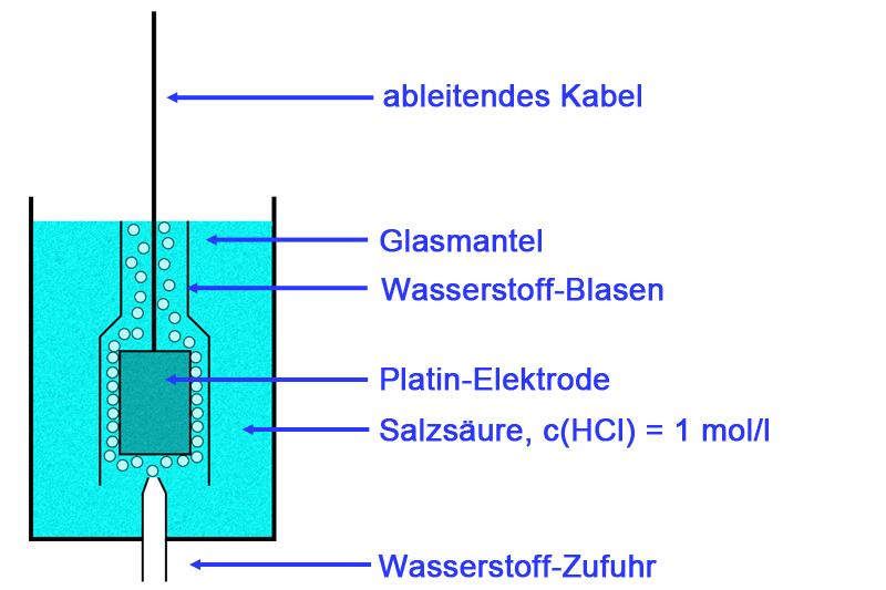 Wasserstoff ist ein gasförmiges Element und außerdem das leichteste Element überhaupt. Ein Wasserstoff-Atom besteht ja aus nur einem einzigen Proton und einem einzigen Elektron. Vielleicht war dies der Grund, denn Wasserstoff als Bezugssystem zu wählen. Wie aber ist dann eine Wasserstoff-Halbzelle aufgebaut, die ja benötigt wird, um solche Messungen durchzuführen?