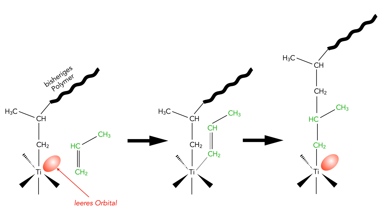 Jedenfalls "schiebt" sich im Endeffekt das Propen-Molekül zwischen das Titan-Atom und das bisherige Polymer.