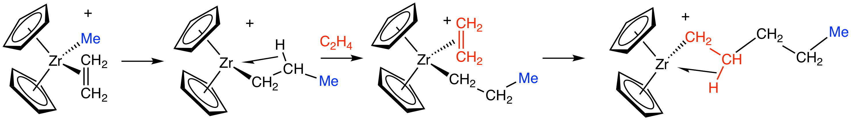 "The ethylene unit inserts itself between metal and the ethyl group." [1, S. 1131]