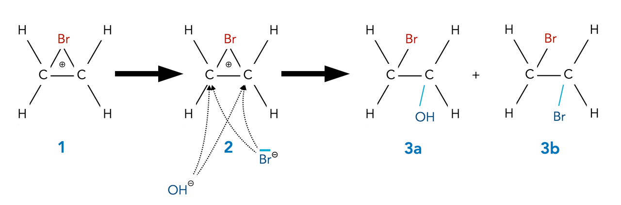 Lässt man die Bromierung von Ethen in einem wässrigen Lösemittel ablaufen, erhält man ein einfaches Halogenhydrin (3a):