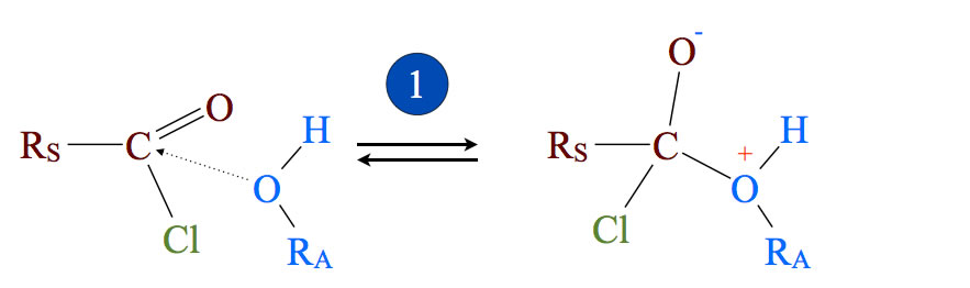 Säurechlorid sind wesentlich reaktiver als Carbonsäuren. Das C-Atom der COOH-Gruppe ist durch das stark elektronegative Chlor-Atom recht stark positiv polarisiert. Daher stellt es ein ideales Angriffsziel für ein Nucleophil dar.