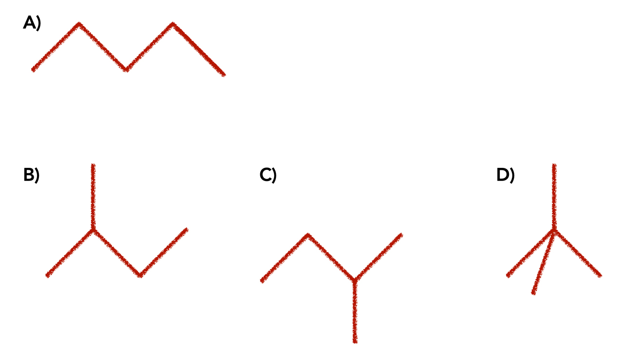 Bei A) sehen wir das "normale" unverzweigte Pentan.