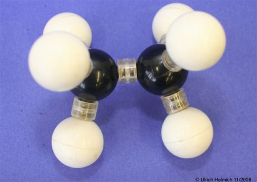 "Zwei C-Atome sind durch eine Einfachbindung miteinander verbunden, und jedes C-Atom ist mit drei H-Atomen verknüpft".