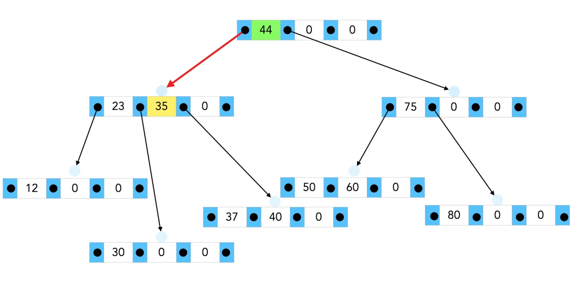 Dieses Bild zeigt einen einfachen B-Baum mit N = 3.