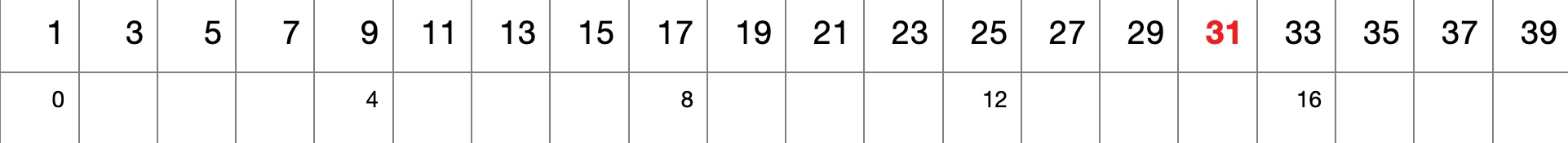 - Vergleich 25 <= 31 = true → 4 Elemente weiter