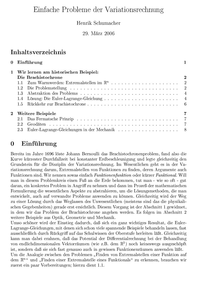 Inhalt Einfache Probleme der Variationsrechnung, von Henrik Schumacher Die Einladung Das Skript Maple-Dateien zum Download: Zykloide.mws - Fermat.mws - HyperGeo.mws - Hamilton.mws PDF-Dateien zum Download: Zykloide.pdf - Fermat.pdf - HyperGeo.pdf - Hamilton.pdf